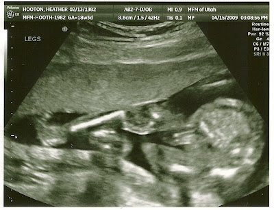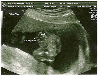 I had my ultrasound today and we found out for sure that we are having a boy. They told me at 13 weeks they thought it might be a boy, but couldn't say for sure because of how early it was. When we went in today they said there was no doubt. One of the first pics we got of his little boyhood the little stinker was um....grabbing himself. Like Father like son, lol. In the picture below right where the word hand is there are his fingers which are covering his little boy parts. They showed us in other pictures that it was for sure a boy. They also gave us a DVD of the whole ultrasound which was awesome. I'm so excited!!!!! On a sad note though, Taylar is sick again. She has had a fever for the last couple days. I feel so bad for her. There is nothing worse than when your child is sick.